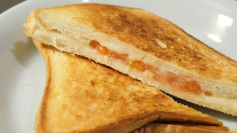 チーズがとろけて、トマトがあつあつの、外側がカリッとしたホットサンド。